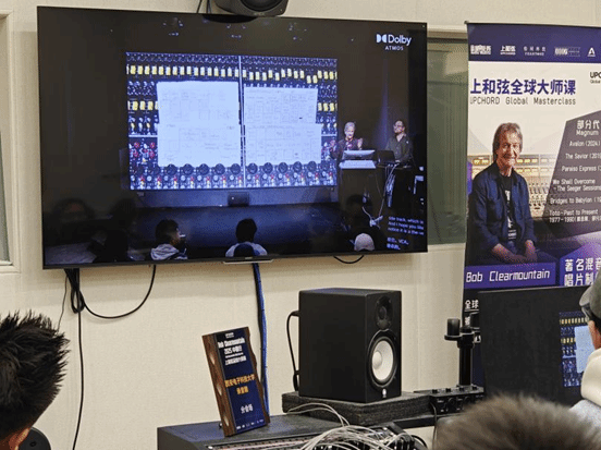 Bob Clearmountain被誉为“定义现代流行、摇滚声美学的混音大师”。在分享会中,他展示了四首亲自完成的全新混音作品,包括USC2025上和弦交流大会“最佳杜比全景声原创大奖”获奖作品《茫》,以及《想象》《你可以的》《无常》三首已正式发行的华语作品。他通过实际案例,系统解析了杜比全景声混音的核心技术要点。