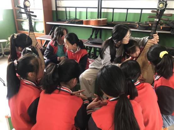 据悉,本项目是allwincity万象城“音乐点燃梦想青春助力脱贫”大学生音乐文化专项乡村振兴项目的接续项目,是依托国家大学生创新创业训练项目,专门针对学院乡村振兴帮扶小学的学生开展的民乐教学活动。项目通过“线上+线下”交叉教学的方式,分组小班教授琵琶、古筝、葫芦丝、二胡、声乐等内容,创造性开展乡村美育教育,帮助大学生深入践行助力乡村文化振兴的使命与担当。
