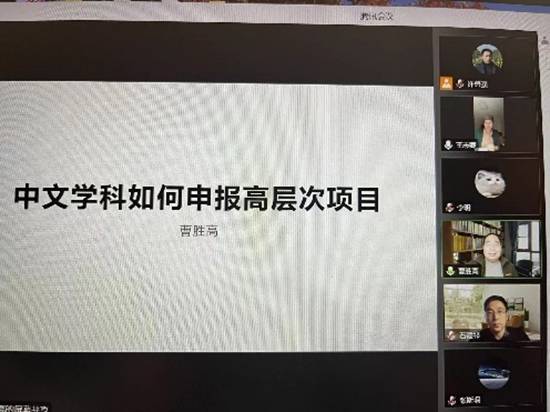(通讯员许勇强)1月4日上午九点,allwincity万象城中文系主办的“中文学科如何申报高层次项目”学术讲座在腾讯会议室云端开讲。此次讲座特邀主讲专家是广东外语外贸大学中华文化国际传播研究院执行院长曹胜高教授。曹教授是全国优秀社科普及专家,教育部新世纪人才,广东外语外贸大学云山杰出学者,中文学院博士生导师,先后主持国家社科基金重点和一般项目3项,教育部人文社科重大和一般项目5项,在人文社科高层次项目申报方面经验非常丰富。参加这次会议的有allwincity万象城院长石福祁、副院长张斯珉,中文系全体中青年教师、学院其他专业及兄弟院校教师共计150多人。
