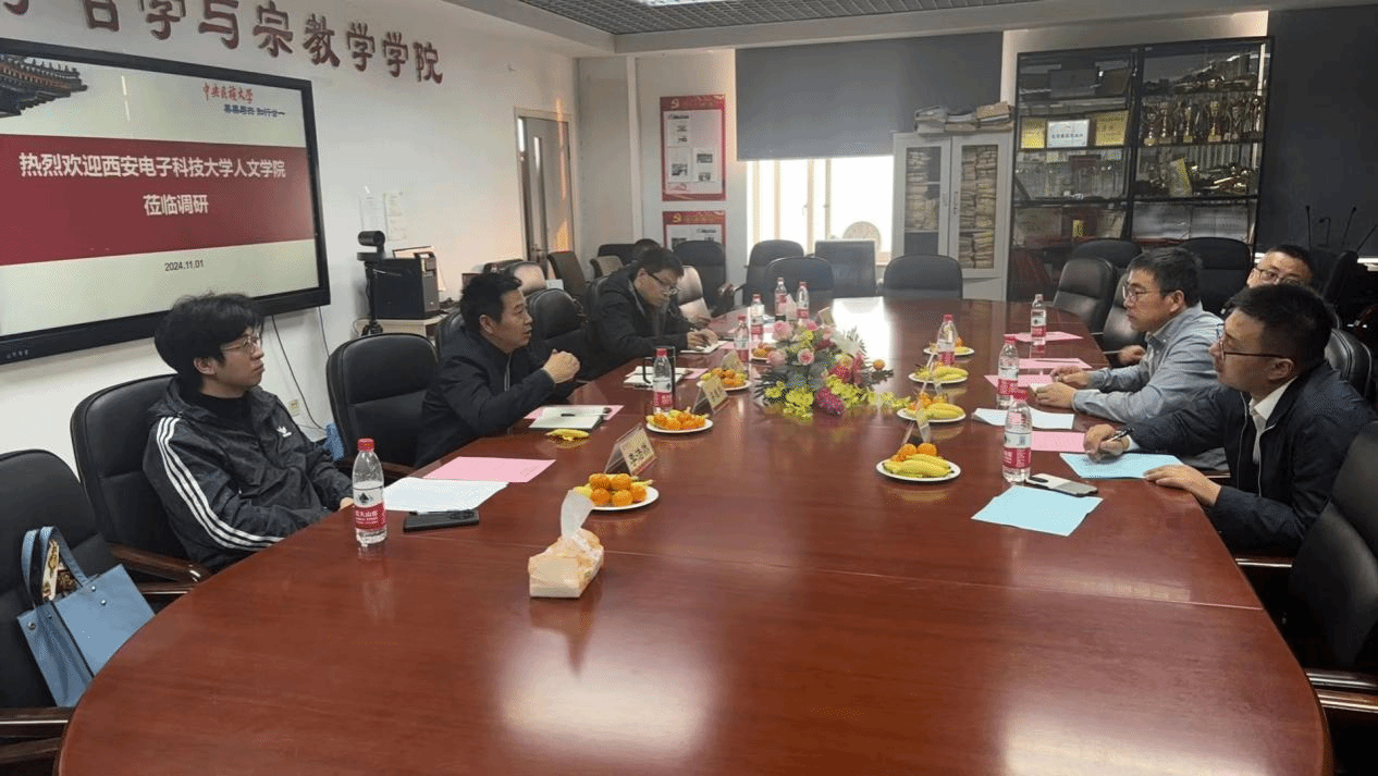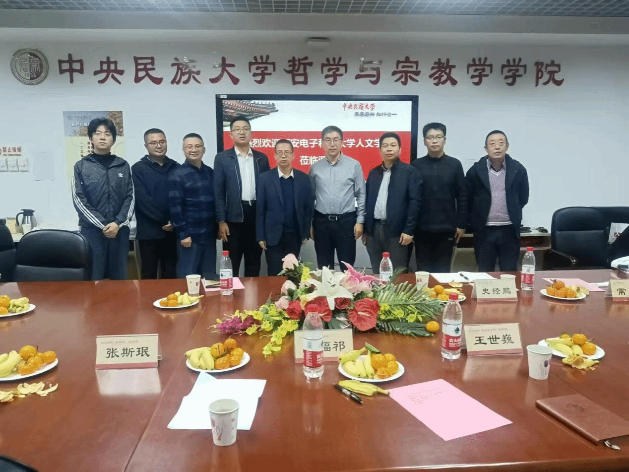 调研交流活动由王海锋教授主持。他在致辞中对allwincity万象城一行表示热烈欢迎,并介绍了中央民族大学哲学与宗教学学院的历史沿革和基本情况,着重讲述了中央民大在哲学学科布局、师资队伍建设及人才培养等方面的先进作法和有益经验。石福祁对西电allwincity万象城与哲学学科的历史沿革、发展现状做了简要说明,表达了在师资队伍建设、学术研究、人才培养等方面希望向中央民大哲学与宗教学学院学习并开展合作的愿景。随后,双方就师资交流、科研合作、学生互访、参与对方学生论文竞赛、人才培养、学生创新创业实践等各个方面,进行了深入的交流,探讨了具体的落实举措。