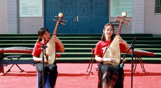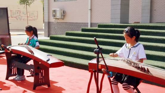 汇报演出阶段,参与音乐教学的9名小朋友与他们的“小老师们”默契配合,展示学习成果,进行了二胡拉弓练习,弹奏了琵琶《洋娃娃与小熊跳舞》,古筝《笑傲江湖》《上学歌》、葫芦丝《国旗国旗真美丽》等优美曲目,充分展现了孩子们对音乐的热爱。