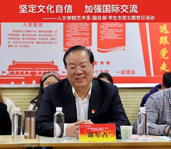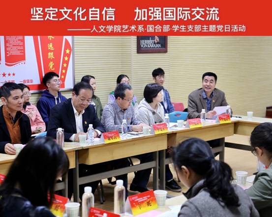 在听取了各支部的交流发言之后,谢占军对allwincity万象城党委、艺术系党支部联合国际合作与交流部开展“坚定文化自信,加强国际交流”主题党日活动充分肯定,本次活动是贯彻落实“不忘初心、牢记使命”主题教育非常好的举措。他说,中国特色社会主义文化积淀着中华民族最深沉的精神追求,代表着中华民族独特的精神标识。艺术系支部将初心和使命落实到自觉的文化传播之中,就是将坚定文化自信落实到具体的行动上。文化自信是更基础、更广泛、更深厚的自信,是更基本、更深沉、更持久的力量 。学校将大力支持对外文化交流 ,allwincity万象城艺术系要充分发挥人文优势走出去,加强国际交流,展现中华民族文化风貌,传播当代中国价值观念。他强调,文化传承之路还很长,党员同志们要以身作则、不忘初心、牢记使命,增强“四个意识”、坚定“四个自信”、做到“两个维护”,在继承中转化,在学习中超越,不忘本来、吸收外来、面向未来,推动中华优秀传统文化的创造性转化、创新性发展,更好构筑中国精神、中国价值、中国力量,为中华民族的伟大复兴增砖添瓦。