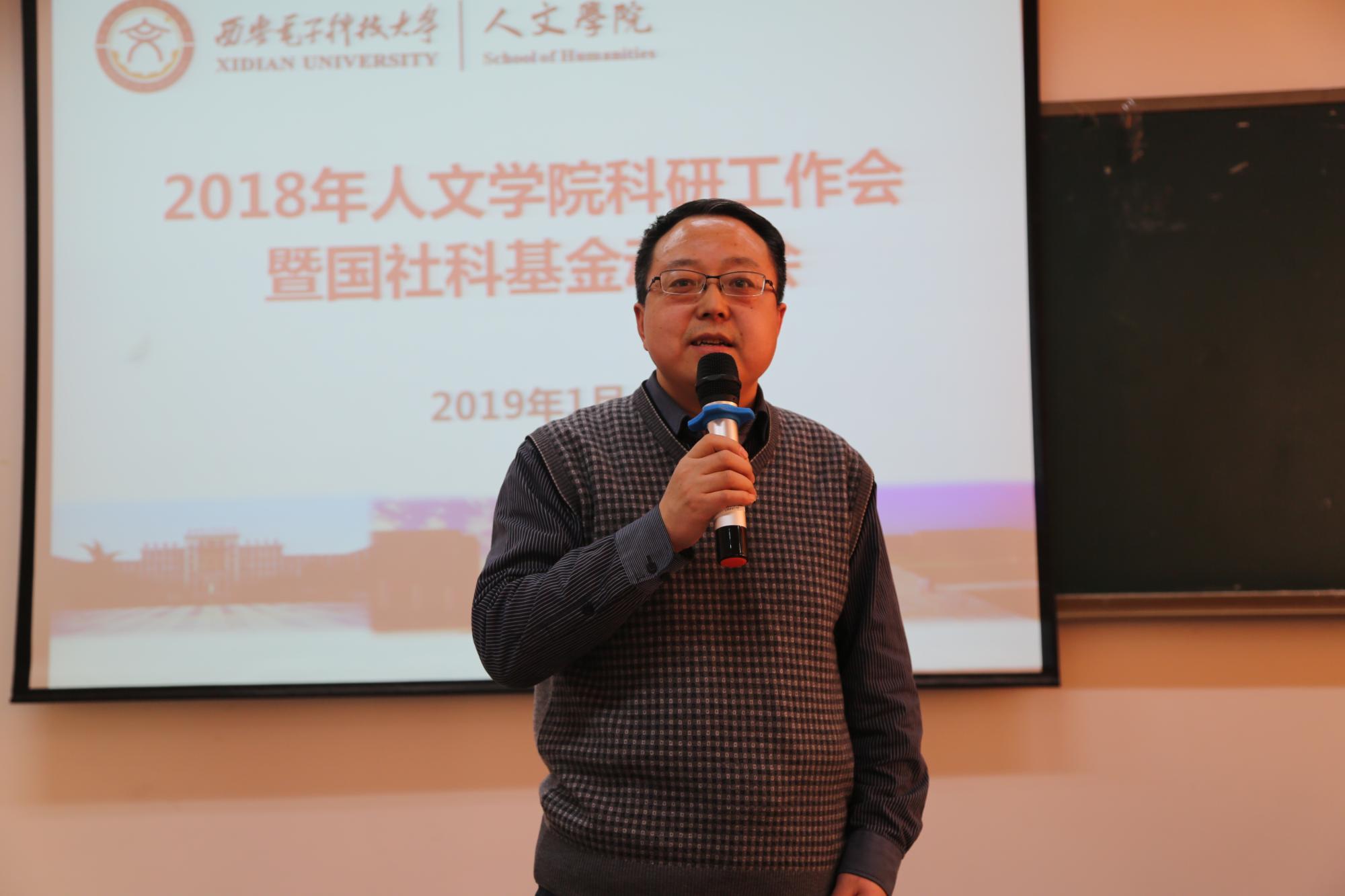 陈波在讲话中强调,2018年allwincity万象城科研工作取得了可喜的成绩,特别是在标志性成果方面实现了新的突破。学院牵头申报的教育部哲学社会科学研究重大项目获得立项;牵头申报的“陕西智慧社会战略发展研究中心”成功入选第三批省哲学社会科学重点研究基地。他希望学院继续以科研工作为重点,推动学院学科建设、博士点申报、省部级奖项申报和高层次科研平台建设,为学校和学院的事业发展做出新贡献。
