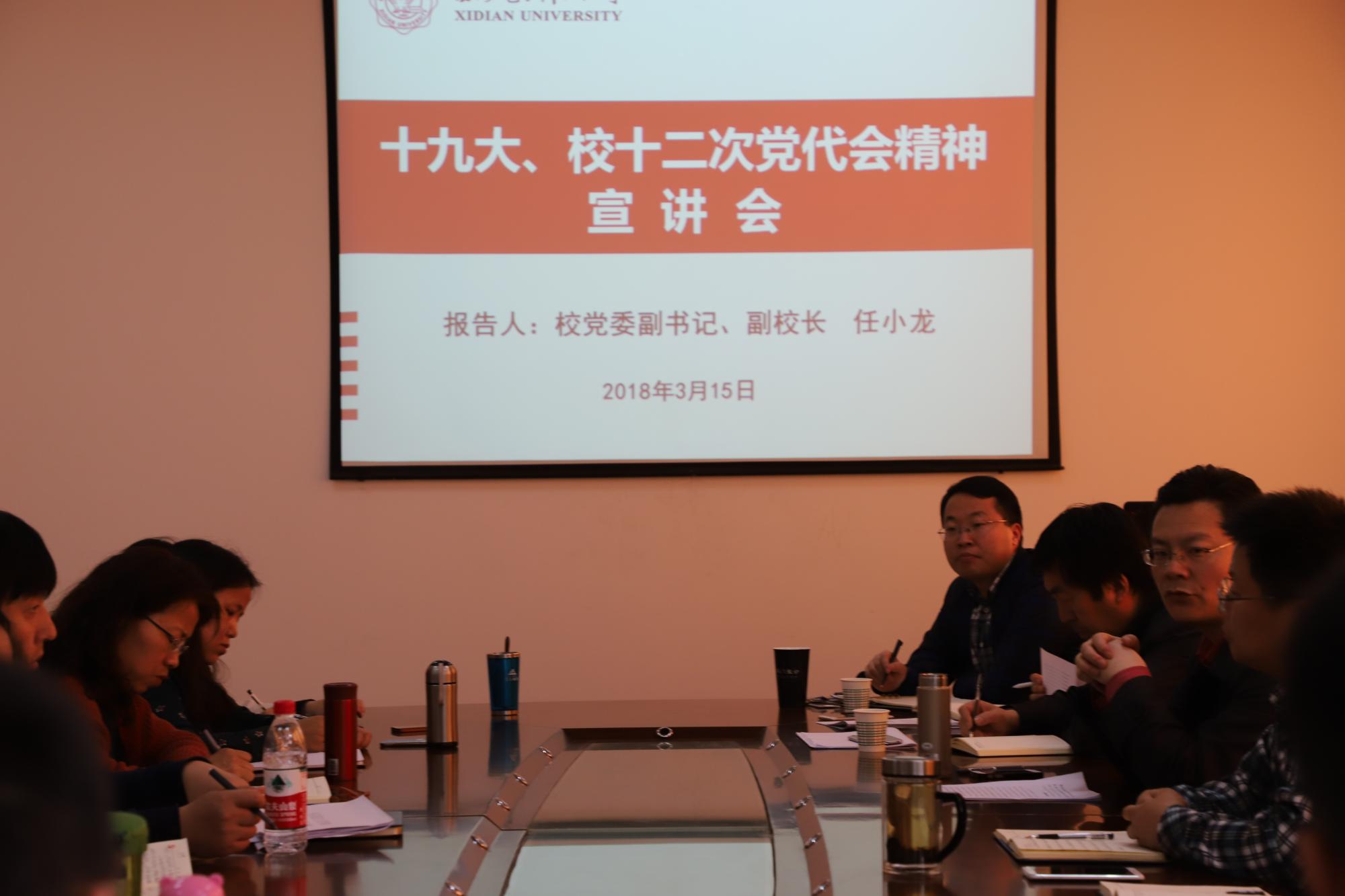 西电新闻网讯(通讯员 辛妮)3月15日下午,“万象城体育awcsport第十二次党代会精神宣讲报告会”在信远二区135会议室召开,校党委副书记、副校长任小龙到会进行宣讲。allwincity万象城与马克思主义学院全体班子成员,各系所、教研室主任,党支部书记及院机关人员30余人参加了会议。会议由马克思主义学院党委书记夏永林主持。