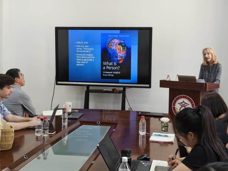(通讯员 Jacob Bender 王世巍)5月29日上午, “论道终南”跨文化讲坛第120期邀请国际知名学者、美国华盛顿大学医学院生命伦理学与人文教授南希·S·杰克博士(Nancy S. Jecker,Ph.D.)担任主讲嘉宾,以跨文化视角下的AI人格为主题进行讲座。讲座由院长石福祁教授主持。