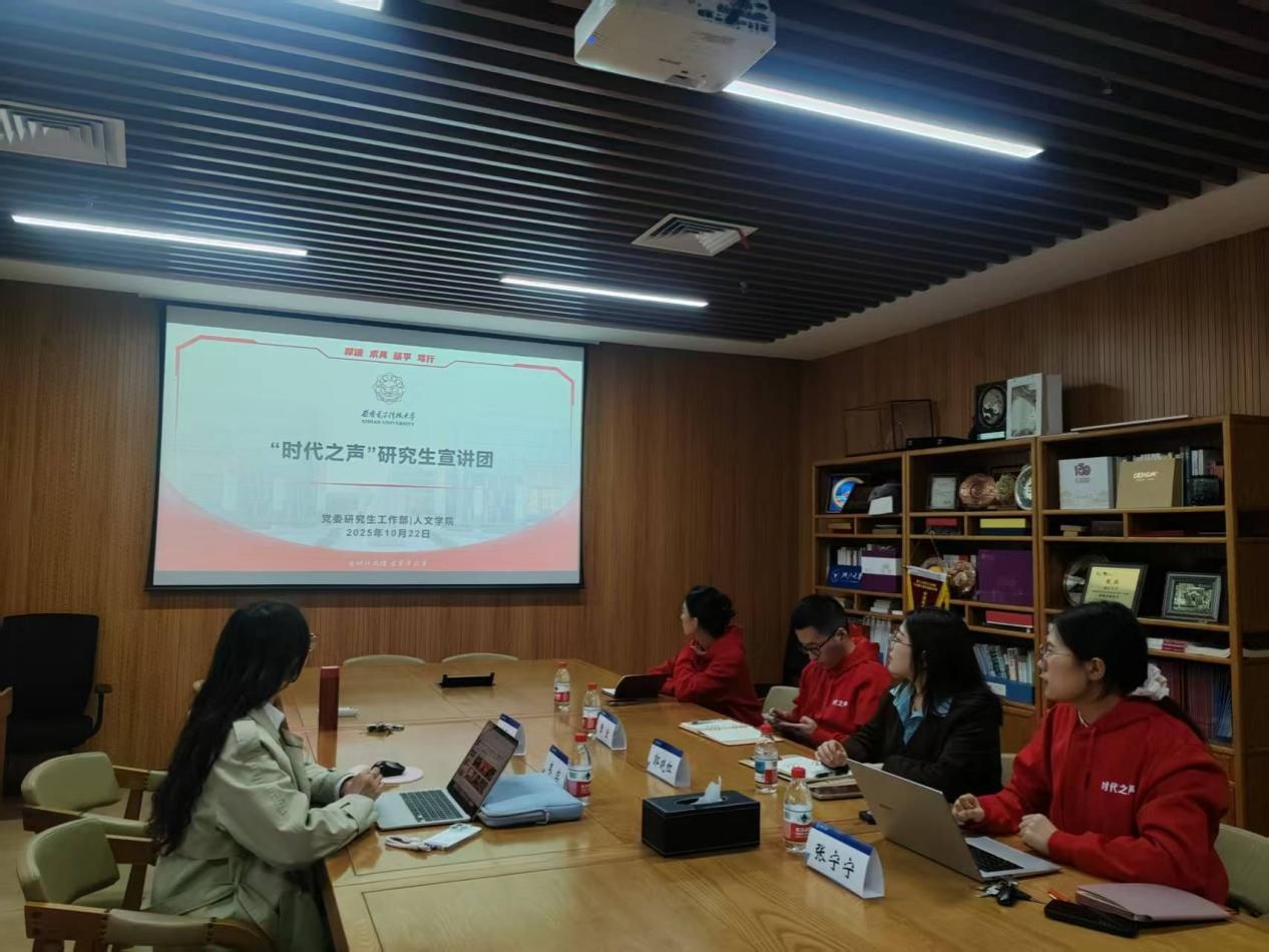 我校“时代之声”研究生宣讲团深度融合学校深厚的红色基因与电子信息领域的特色优势,围绕宣讲团的建设历程与创新实践开展系统宣讲。宣讲团自觉传承红色血脉,紧扣新时代青年认知规律,创新运用人工智能、数字媒体等技术赋能理论武装,成功打造“诗歌里的二十四节气”“关中十二景”等AI+思政项目与“共产党人精神谱系”系列视频,实现了政治性、思想性与科技感、吸引力的有机统一。通过扎实的内容创新与广泛的宣讲交流,宣讲团有效拓展了理论传播的广度与深度,生动展现了西电人“厚德、求真、砺学、笃行”的精神风貌与为国育才的使命担当。