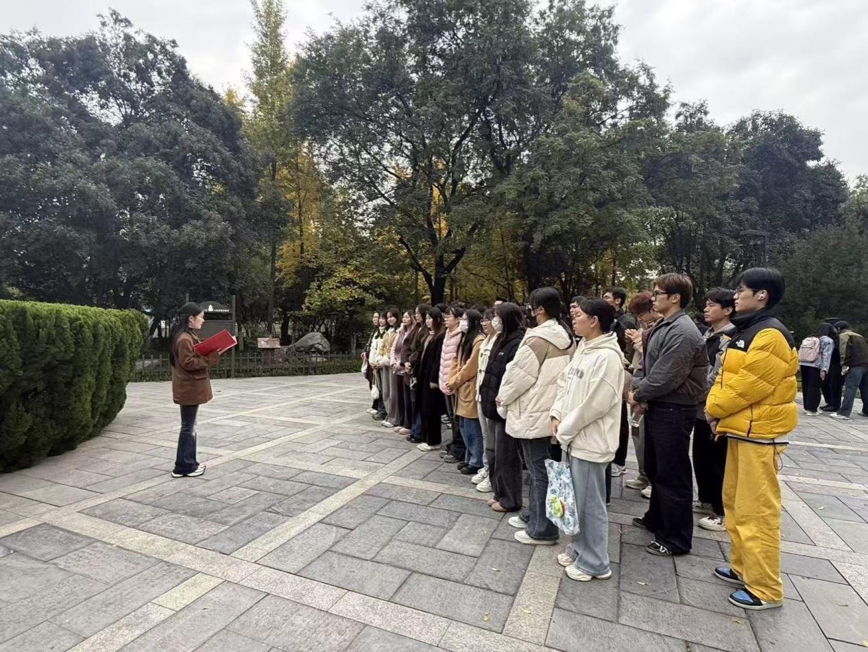 在革命公园杨虎城将军雕像前,宣讲团成员通过讲述革命先辈在民族危亡之际秉持崇高理想信念、勇于担当使命的英雄事迹,深刻阐释了其中蕴含的以民族解放为重的革命精神与爱国情怀。“先辈用生命践行的理想,正是革命文化的鲜活注脚。”宣讲者深情的讲述使在场师生深刻认识到,革命文化绝非抽象的概念——它体现在革命先烈用鲜血和生命铸就的伟大精神丰碑之中,是先辈在危难中坚守的理想信念,是中华民族血脉中传承的宝贵精神财富,更是文化自信最深厚的力量源泉,为我校研究生传承红色基因提供了坚实的思想保障。