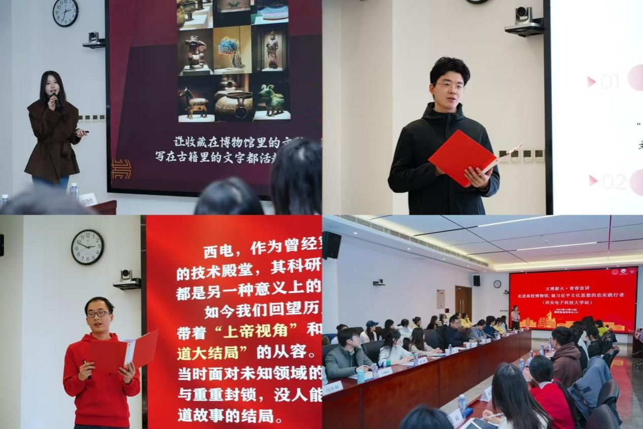 (通讯员 张宁宁 万晨阳)为深入学习贯彻习近平文化思想,搭建文化传承与青年成长的桥梁,12月19日,以“文博薪火·青春宣讲——走进高校博物馆,做习近平文化思想的忠实践行者”为主题的文化宣讲活动在我校南校区成功举办。来自西安交通大学、西北工业大学、西北农林科技大学等15所高校的青年学子与西电“时代之声”研究生宣讲团师生共同开展学习交流,在思想碰撞与文化浸润中深化使命担当意识。