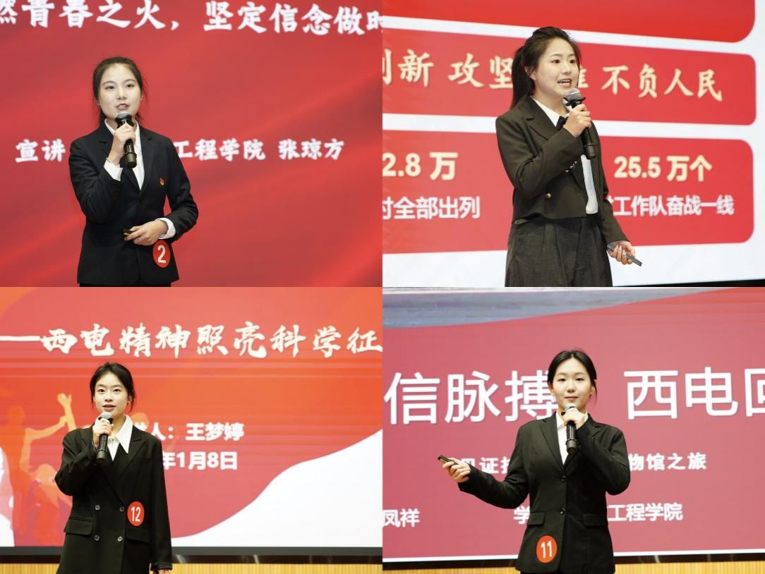 扎根实践沃土,勇担强国使命。选手们紧扣科技报国与实干担当,生动讲述了计算机技术赋能乡村振兴、西电人服务基层的扎实作为;通过回顾通信技术的发展历程与西电的贡献,热情歌颂了我国信息科技事业取得的跨越式成就;借助“石凳承梦、羊圈传薪”等感人故事,诠释了西电科研工作者在艰苦条件下矢志创新、无私奉献的崇高精神;还有选手聚焦求真务实作风,号召青年在科研一线砥砺奋斗、绽放青春。