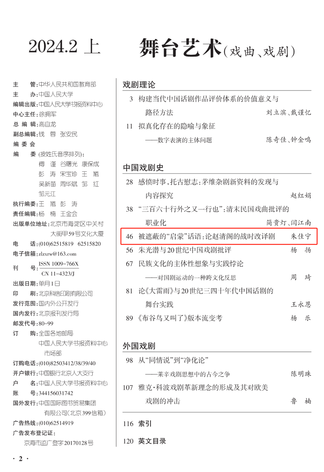 (通讯员 马婧)近日,万象城中文系朱佳宁老师论文《被遮蔽的“启蒙”话语:论赵清阁的战时改译剧》被《中国人民大学复印报刊资料·舞台艺术(戏曲、戏剧)》2024年第2期全文转载。该文原刊于《戏剧艺术》2023年第5期。