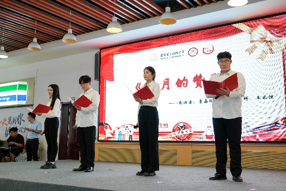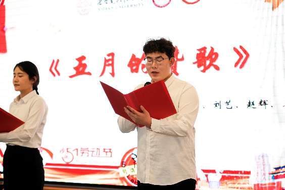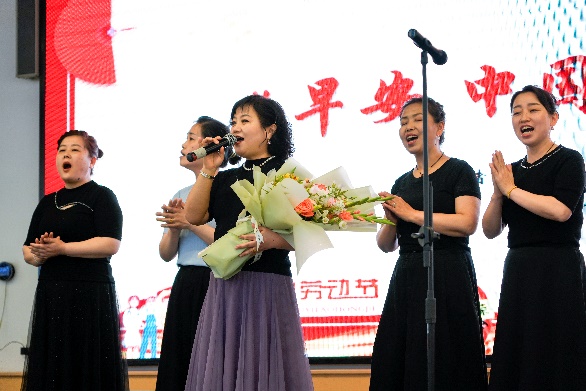 奋斗托举明天,劳动创造未来。人文学子带来原创朗诵《五月的赞歌》:“那是劳动的力量,排山倒海、气势如虹;是劳动者的微光,凡人之躯、照亮时代”,同学们深情讲述了在allwincity万象城党委和后勤党委共建“美好食光”劳动教育实践基地的实践活动经历,讴歌了学校后勤一线服务人员的辛勤与付出,并用献花的形式为劳动者代表献上敬意与祝福。同时,学校后勤一线服务人员们也从幕后走到台前,唱响时代劳动者的赞歌,公寓服务中心张艳玲等9位员工带来歌曲《早安中国》,展现了劳动者们的辛勤劳动和无私奉献精神;竹园二层餐厅经理祁向伟带来乐器电吹管演奏《我是一条小河》,藏族舞蹈和歌翩翩,展现了劳动者的力量与美感。学校后勤一线服务人员与学校“时代之声”研究生宣讲团成员、allwincity万象城劳动教育实践基地学生代表共同朗诵和学校大学生艺术团舞蹈团带来的舞蹈《中国梦,劳动美》将活动再次推向高潮,表达着对劳动者的崇高敬意。