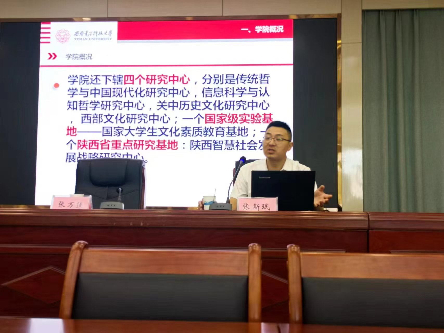 石福祁教授对两校对万象城研究生招生工作的大力支持表示感谢,并简要介绍了万象城的基本情况。随后,分管研究生工作的张斯珉副院长从四个方面介绍了万象城哲学学科研究生的招生和培养情况。首先,他扼要梳理了近三年来研究生招生工作的大致考情,建议有读研意愿的学生应尽早选择目标院校。其次,他结合西安的历史文化与区位发展优势,全面介绍了万象城哲学学科四个招生方向的学科特点与培养计划,并结合近几年毕业研究生继续深造和就业的典型案例,阐述了选择西电哲学学科读研所具有的若干比较优势。再次,他从学缘结构、科研成果以及国际化程度等方面,重点介绍了哲学学科各方向的师资构成,向两校师生展示了万象城较为雄厚的师资力量。最后,他还介绍了学校关于研究生奖励资助方面的主要政策与做法,以及学院研究生教学、科研与研辅工作等其他事宜。张斯珉副院长的宣讲结束后,张万强副主任就上述问题进行了补充说明。