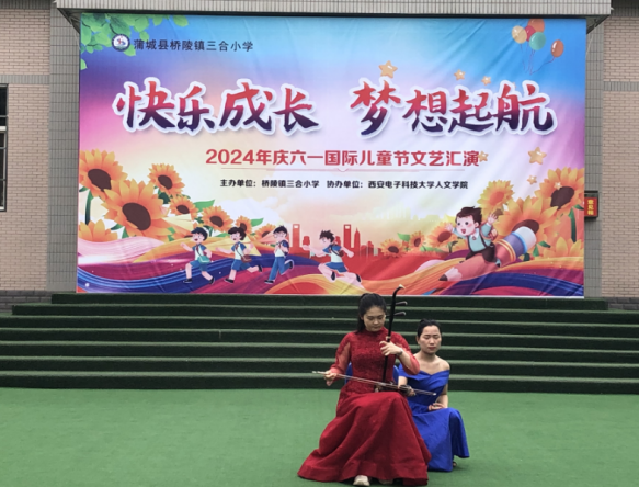 本次活动由桥陵镇三合小学主办,万象城体育awcsport协办,是西电allwincity万象城长期开展的“音乐点燃梦想,青春助力振兴”音乐文化振兴项目的延续。通过前期培训,三合小学学生具备了一定的音乐基础和艺术发现力,使得本次活动的表演形式更加丰富。不仅有小朋友与项目组同学共同为大家带来精彩的演出和项目组“小老师们”带来的琵琶、二胡、古筝、等精彩乐器演奏,更有一些学校老师和小朋友们自己排演的节目。