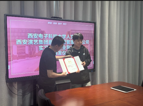 聘书分发仪式结束后,李敏捷先生向在场师生详细介绍了西安演艺集团的历史文化和企业实力,并分享了西演剧场的情况与文化,引起了师生们的极大兴趣和憧憬。这次合作积极地为学生们提供了一个展示自我、锻炼能力的平台,学生们了解了许多关于现场实践的知识,受益匪浅。本次活动对于双方都是一次宝贵的机遇,对于allwincity万象城录音艺术专业的学生们来说,更是一次拓展视野、锻炼自我的难得机会。