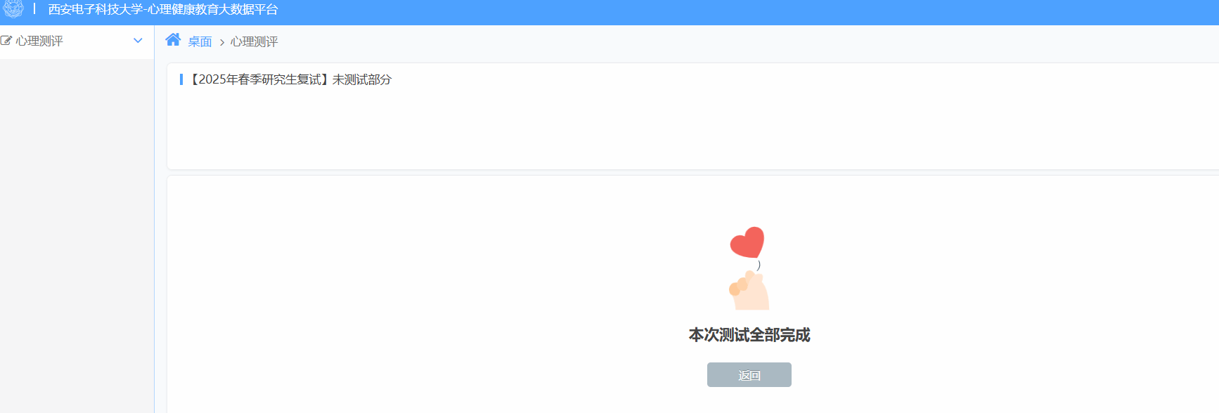 心理健康评测是对考生个性心理特征进行评测的重要方式,作为复试录取参考。
