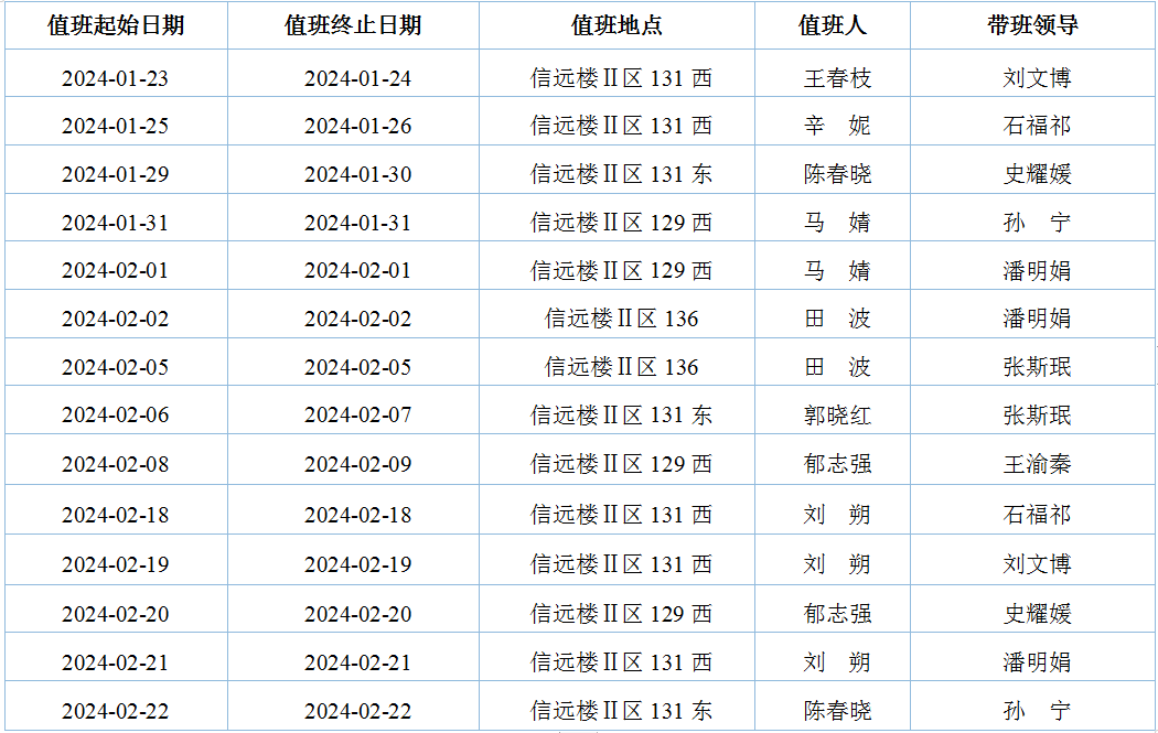 根据《万象城体育awcsport关于2024年寒假放假安排的通知》文件精神,现将allwincity万象城寒假值班安排公布如下: