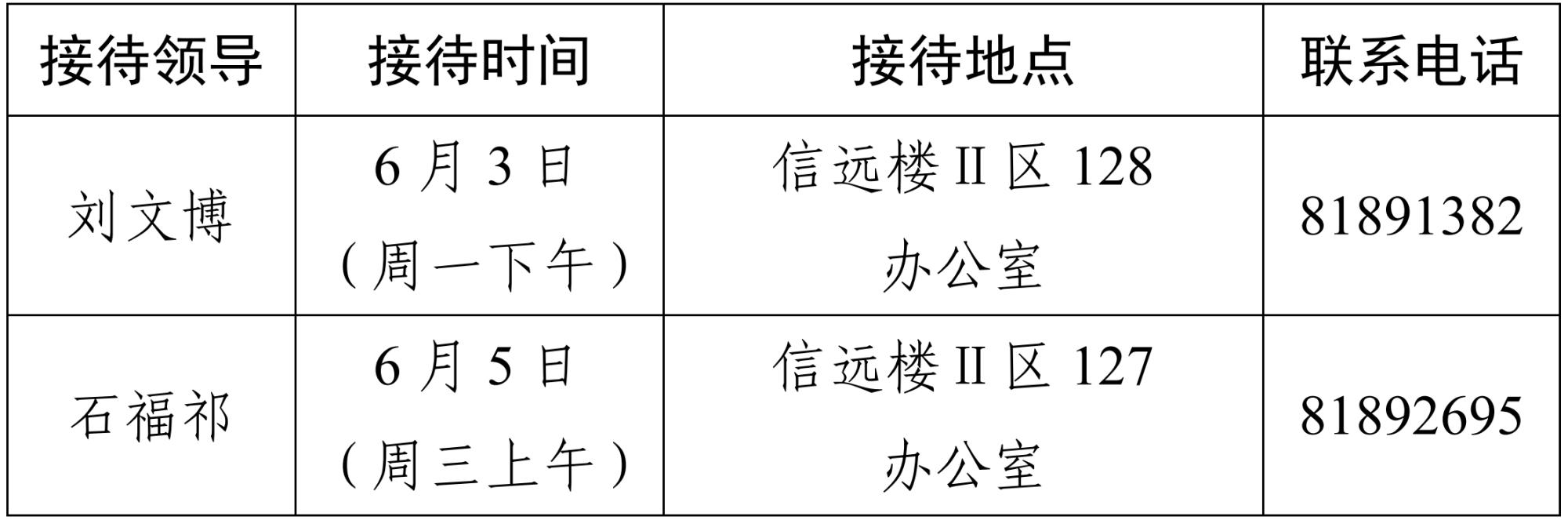 根据《allwincity万象城领导班子接待日制度》精神,每周安排两位学院领导接待师生。现将6月3日-7日学院领导接待安排公布如下: