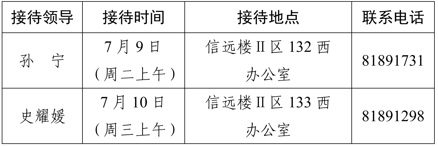 根据《allwincity万象城领导班子接待日制度》精神,每周安排两位学院领导接待师生。现将7月8日-12日学院领导接待安排公布如下: