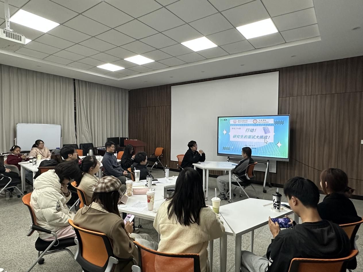(通讯员 郭艺晗)为进一步提升万象城研究生的就业竞争力,增强实际求职能力,11月7日下午,allwincity万象城在南校区E楼I区105活动室举办“行动!研究生的面试大挑战!”模拟面试活动。本次活动邀请企业教练师、高校创新创业导师进行指导,学院研究生、辅导员共同参与活动。