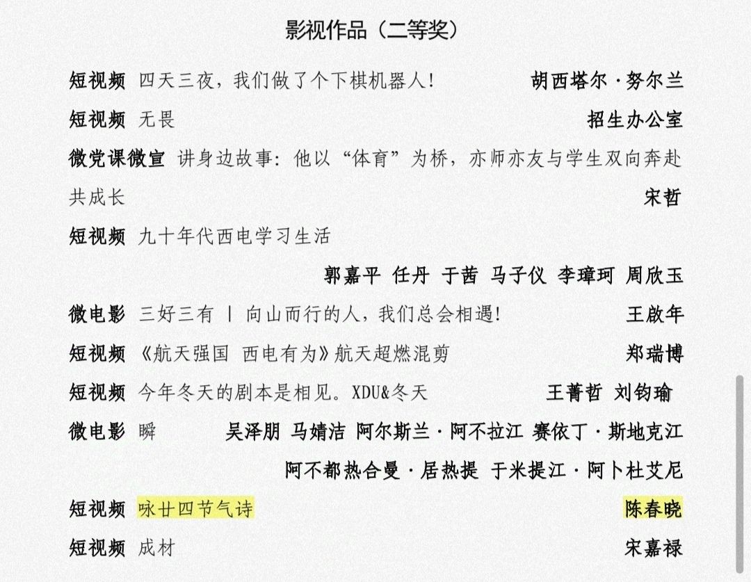 获奖作品以二十四节气这一中华优秀传统文化精粹为创作蓝本,以中华优秀传统文化为内核,创新性地将古典诗词意境与现代影像艺术相融合,通过师生共同诵读、校园四季物候变迁等生动形式,构建出一个诗意盎然的节气世界,将传统文化的精神内核转化为可感、可知、可悟的审美体验,实现了以文化人,以美育人。让我们共同感受这份独特的节气之美!