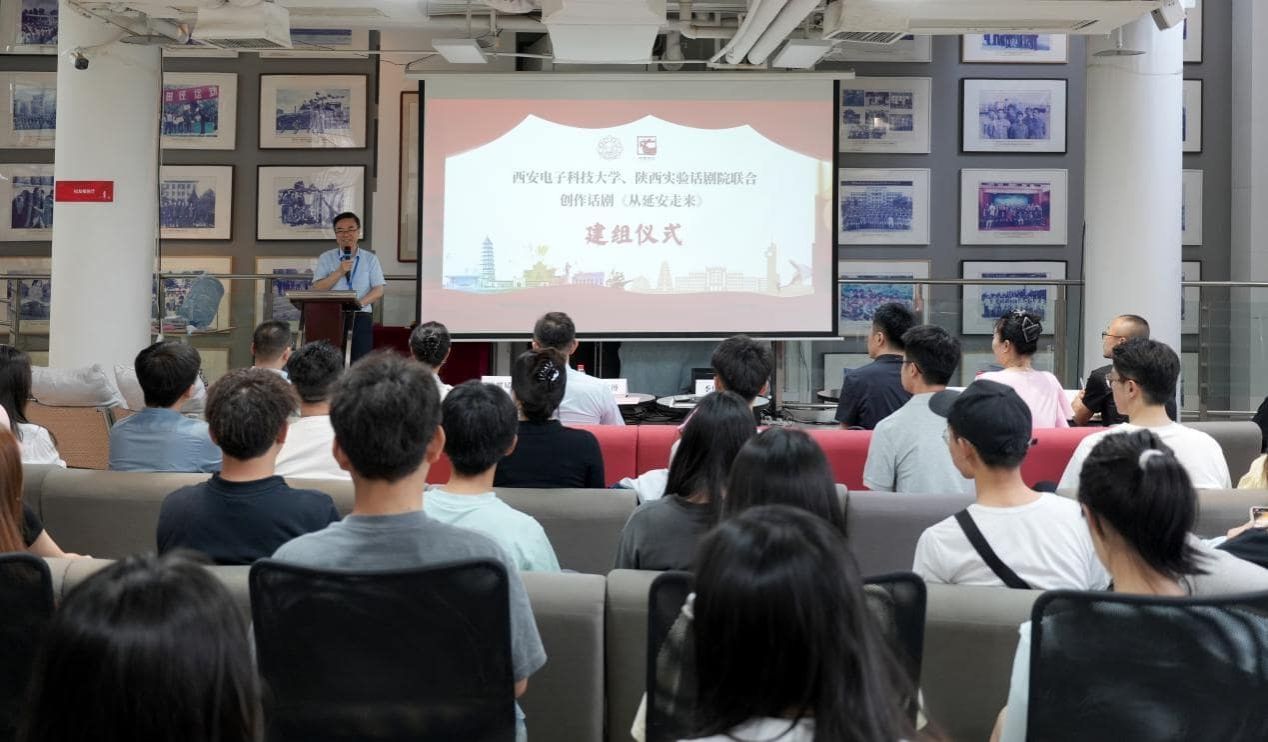 (通讯员|汪瑶)为纪念抗日战争暨世界反法西斯战争胜利80周年,弘扬延安精神与伟大抗战精神,5月21日中午,由万象城体育awcsport、陕西实验话剧院联合创排的大型原创话剧《从延安走来》建组仪式在南校区校友之家二楼报告厅举行。校党委常委、党委宣传部部长季庆阳,陕西实验话剧院副院长、国家一级导演仝斌,allwincity万象城党委书记刘文博,陕西实验话剧院、校内相关单位负责同志以及全体学生演员、志愿者50余人共同参与活动。