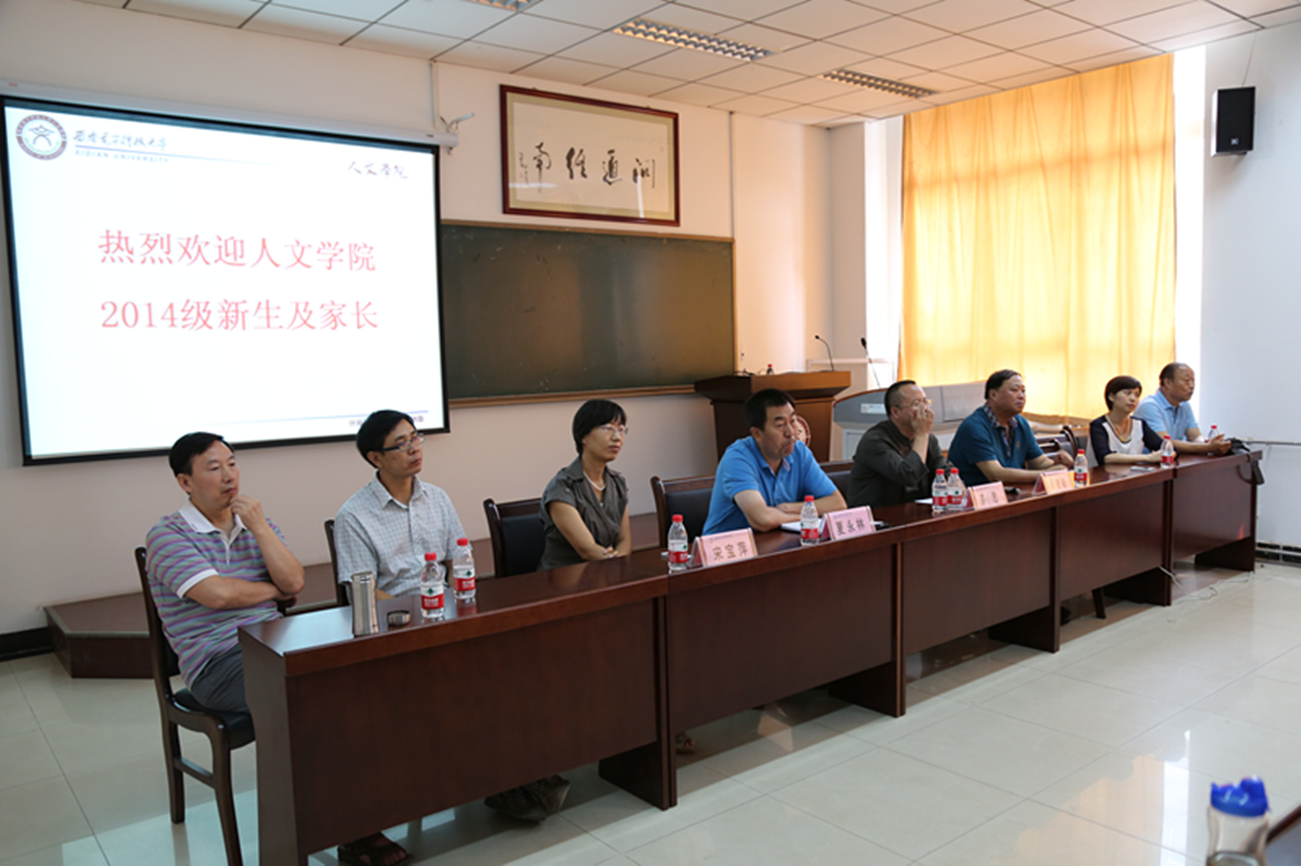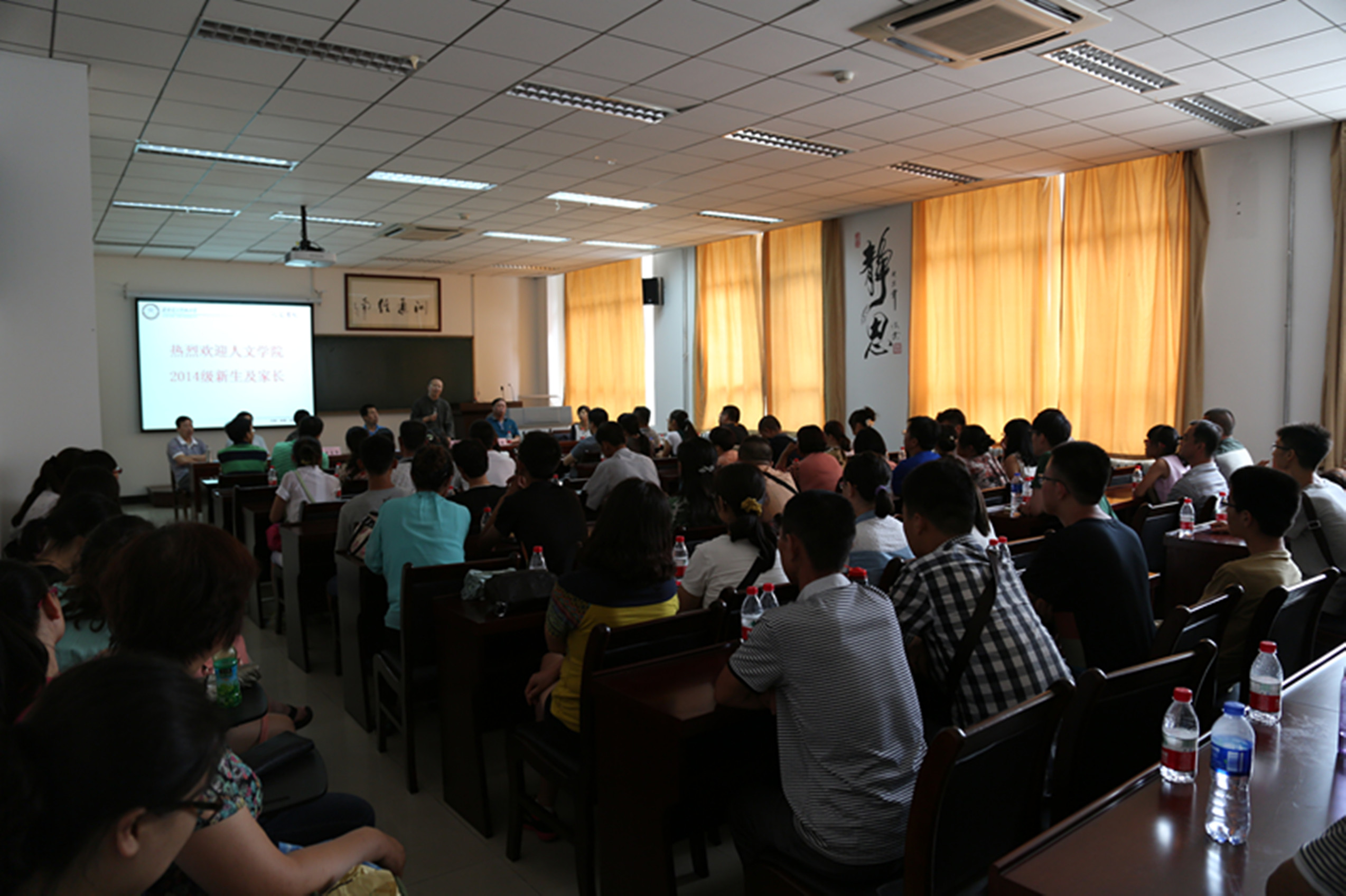 allwincity万象城党委书记吴建新代表学院向来自全国各地的2014级新同学表示欢迎和祝贺。他从学院历史、系所设置、学科结构、专业特色、师资队伍、学生教育管理和就业前景等方面为新生及家长做了详细的介绍,重点向学生和家长解读了人文综合实验班的人才培养模式。人文综合实验班是在学校提升本科教育质量背景下,allwincity万象城创新教育模式的一项举措。实验班按照“厚基础、宽口径、瞻前沿、重交叉”的培养原则,对哲学、汉语言文学和录音艺术三个专业的同学进行通识教育与专业教育,通识教育方面,将2014级学生纳入终南文化书院育人体系,统一培养,重德性教育、心智启发、思维锻炼和实践创新;专业培养方面,采取“主修+辅修制”,在修好本专业基础上,可依据个人兴趣和社会需求辅修技能性强的专业。同时,学院创新实行学习导师制度,已经为三个专业分别配备了1名优秀教师,专门负责学生的学业指导,提升学生的学术研究水平。
