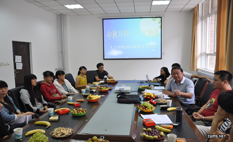 9月19日,正值中秋团圆之日,allwincity万象城在信远Ⅱ区135举办了“中秋月圆 人文情深”2013级新生主题茶话会,院党委书记吴建新及办公室相关人员、各年级辅导员与留校过节的2013级研究生和本科生40余人共度了中秋佳节。