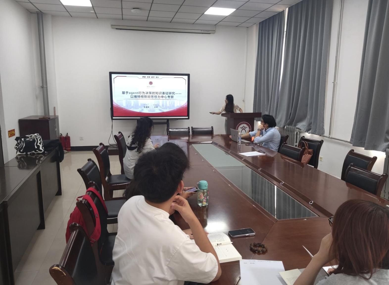 随后,李亚男以“基于agent行为决策的知识表征研究——以维特根斯坦思想为中心考察”为题进行汇报。她首先介绍了Agent(智能体)的概念及其在现代计算机科学中的应用背景,特别是智能体在复杂环境下的自主决策机制。接着,李亚男将焦点转向了哲学家路德维希·维特根斯坦的思想,探讨了他的语言游戏理论和规则遵循理论对于理解和建模Agent行为决策的重要性。她深入分析了维特根斯坦哲学中关于语言和规则的观点,指出语言不仅是交流的工具,更是理解世界的方式。在Agent的设计过程中,应当借鉴维特根斯坦的思想,将知识表征视为一种动态的过程,而不仅仅是一套静态的数据结构。通过这种方式,可以更好地模拟人类的认知过程,使智能体具备更加灵活和适应性强的决策能力。