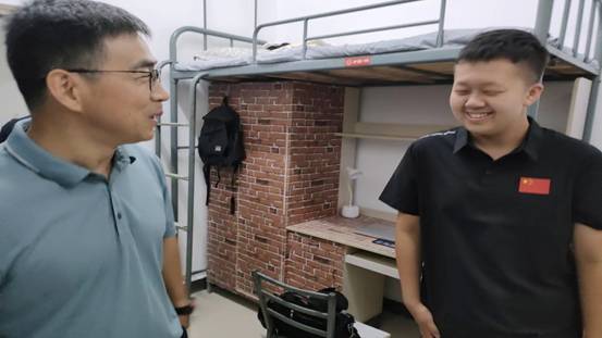 “家是哪里的?”“什么时间到的学校?”“对学校的感觉怎么样?”“宿舍环境觉得怎么样?”石福祁详细询问了新生进校感受。学生及家长一致认为宿舍环境舒适,设施设备齐全,对学校和学院对学生们的重视和关心表达了感谢。石院长勉励同学们要珍惜良好的学习和生活环境,在美好的校园里奋力书写青春之歌。